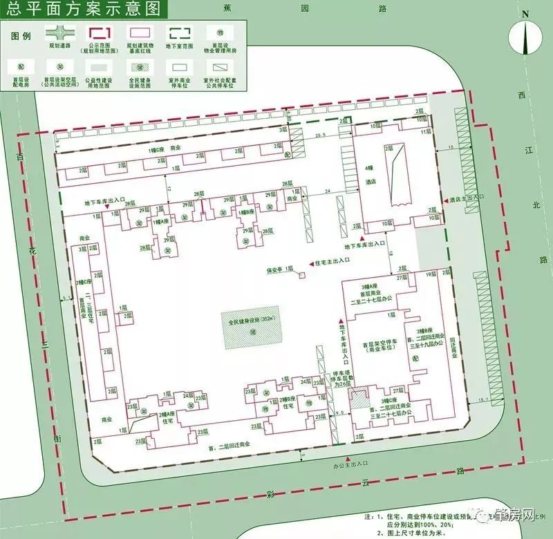 2017年3月6日,位于肇庆西江北路42区的水果批发市场地块,由肇庆市联兴投资有限公司以1.188亿元摘下。时隔一年,才有规划出台公示,项目名为“喜园”,总建筑面积125820.97㎡,总计容建筑面积103890.82㎡(其中回迁商业计容面积5000.15㎡)。南北两侧为24层和29层4幢住宅,西侧为单排3层的商住一体楼。