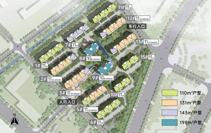 【面积区间】建筑面积约110㎡、131㎡、143㎡、195㎡