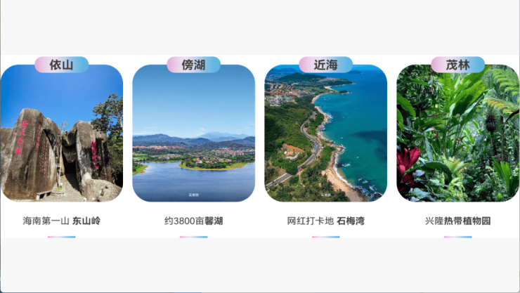 🌊亲海:邻近石梅湾,集碧海、青山、白沙、奇石、岛屿、椰林于一体,景色怡人。