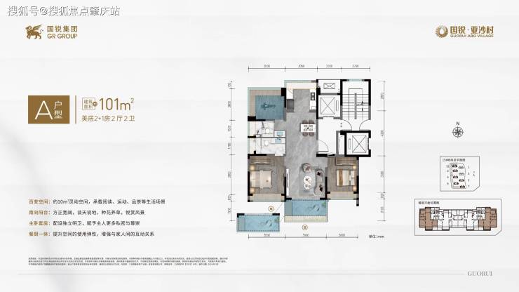 A户型:约101㎡ 美居2+1房2厅2卫