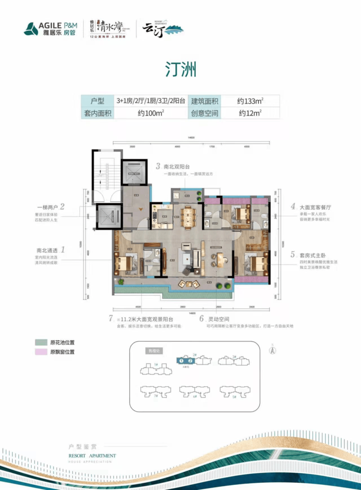 【首推产品】:建面约102-129㎡纯板式花园小高层