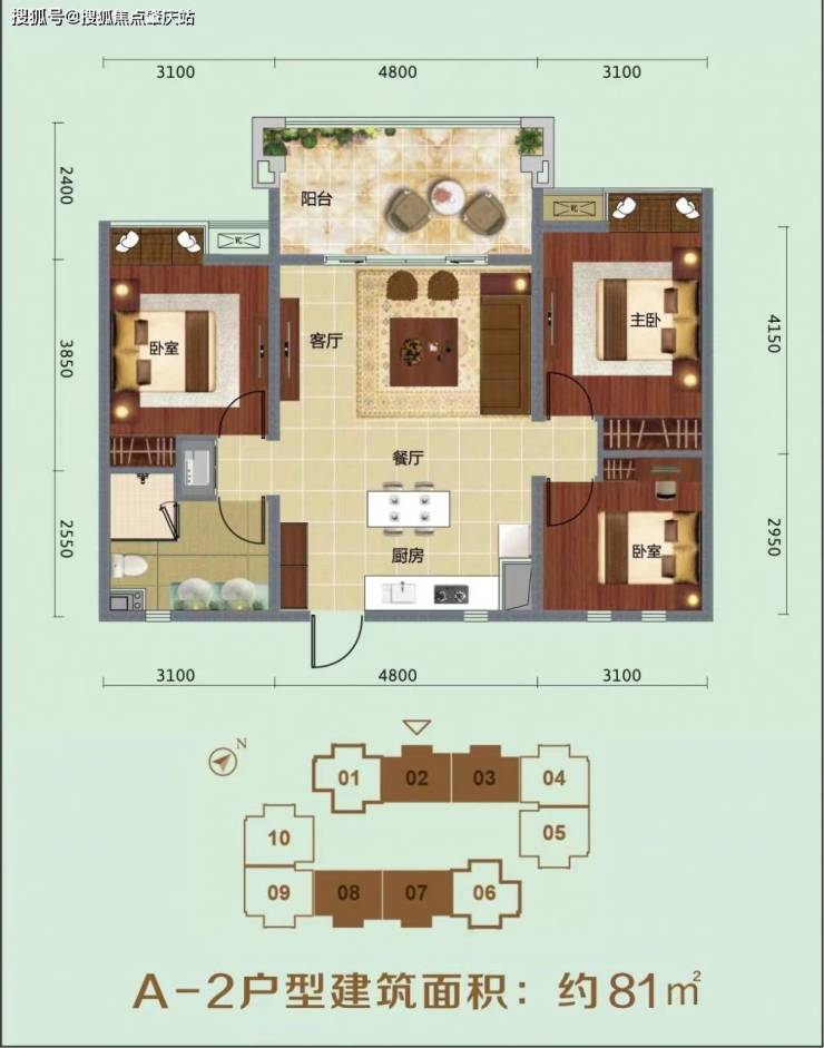 ⭐A-2户型建筑面积:约81㎡