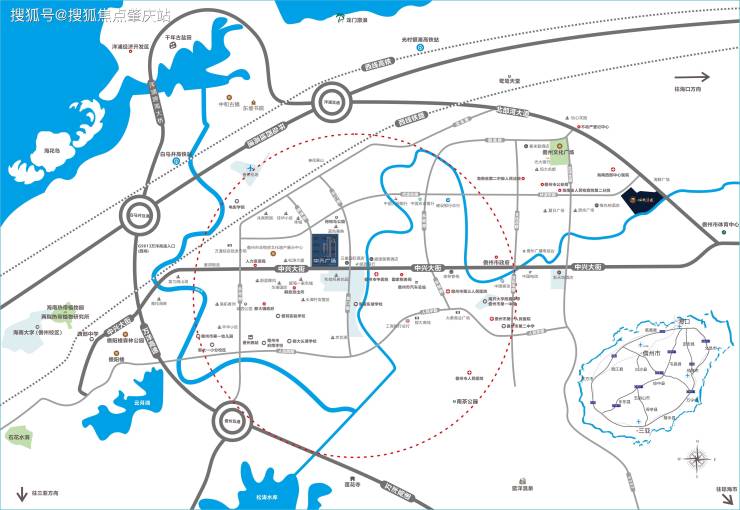 中兴广场背靠棕榈岛公园,与儋阳楼博物馆,东坡学校、市中医院、市妇幼保健院(在建)、万通农贸市场、仅一路之隔,享尽城市中心配套,夏日广场、百佳汇大型超市,大勇时尚购物商场仅8分钟车程