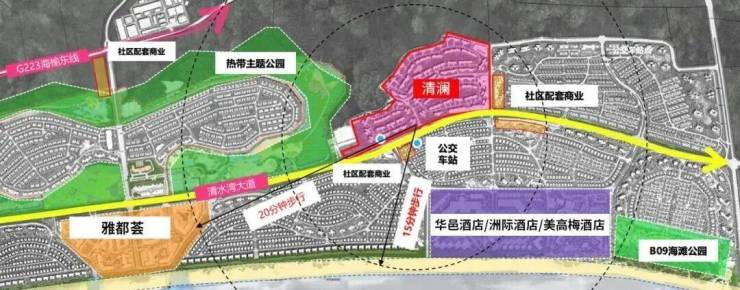 -距清澜组团仅约2公里,可享受吃、喝、玩、游、购、娱一站式安家定制服务