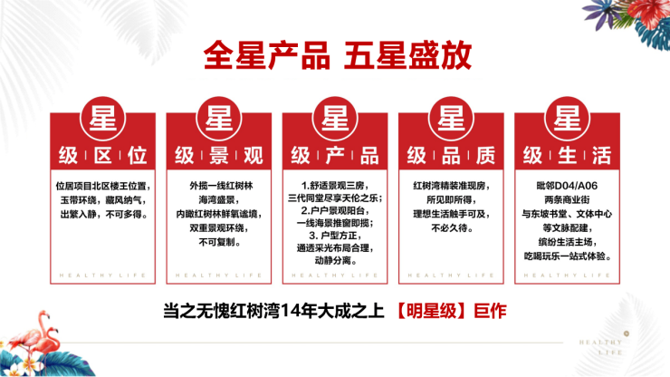 项目配建:红树林湿地公园、红树湾医院、健康管理中心、星空营地、文体中心、运动公园、红树湾生态疗愈中心等20大配建;