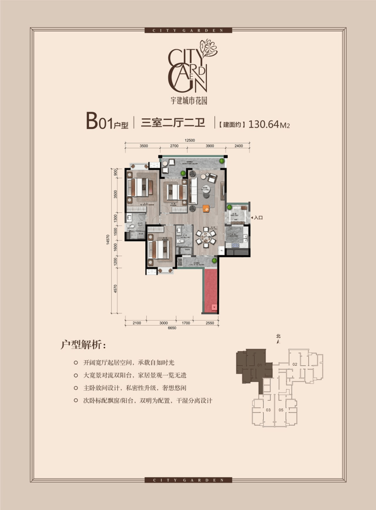 【建筑面积约120-130㎡ 三房二厅二卫】