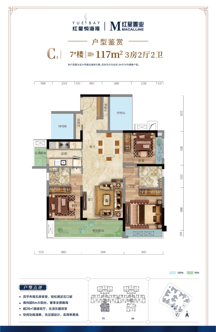 ——C1户型:建筑面积约117㎡ 3+2房2厅2卫