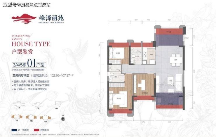 3栋01/02户型107平米三房两厅两位