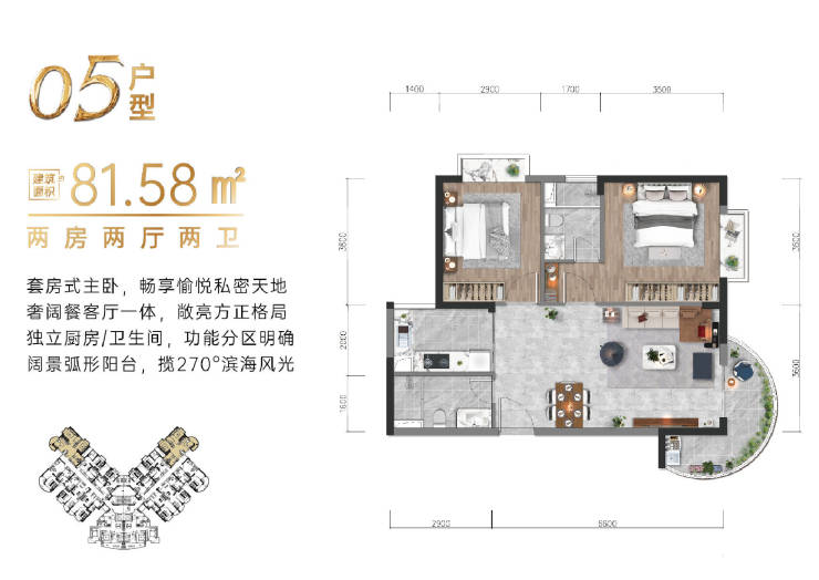 🌊 距海岸线约1500m的垂直距离,亲海观海而不靠海,不潮不燥,蔚蓝咫尺