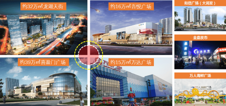 与自贸港首个百亿TOD综合体龙湖天街(32万㎡)相邻;近揽吾悦广场(16万㎡)、万达广场(15万㎡) 、喜盈门广场(39万㎡)、红星美凯龙等大型商业环伺,奢享执掌海口城央缤纷生活主场。
