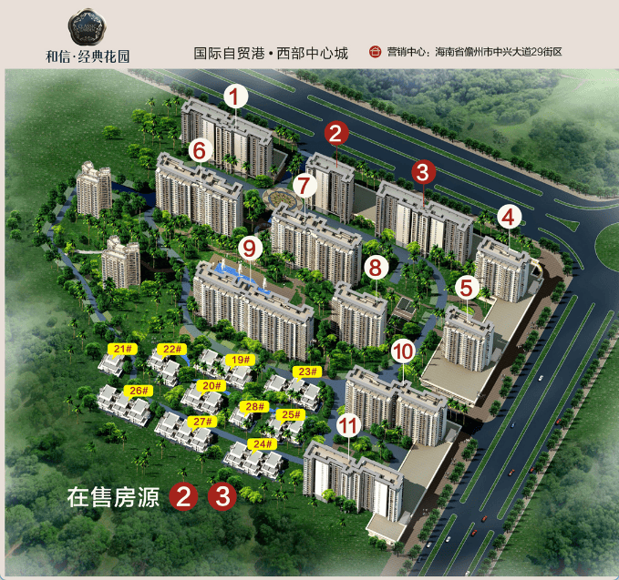 儋州和信经典花园项目地址:儋州市中兴大街29号街区