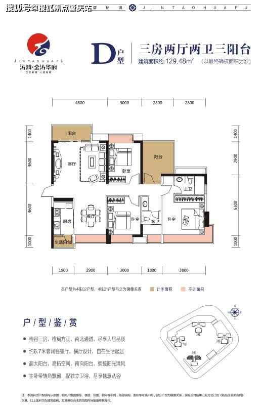 🎯建面约129.48㎡三房两厅两卫三阳台