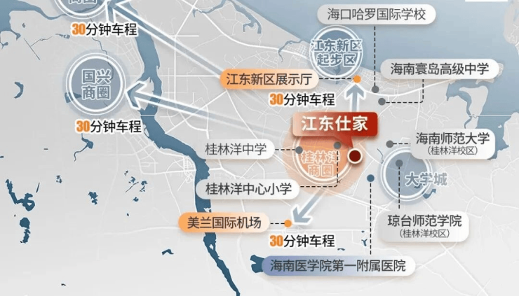 中小学:附近有江东枫叶国际学校、海口市桂林洋中学等学校,提供从小学到中学的优质教育资源。