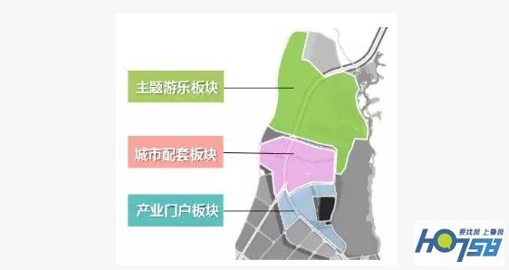 在空间布局上,将依托城市快速道路及未来轨道系统,构建以线串点,以点带面的“点–线–面”城市发展结构,以“一轴·三区·三带”的空间架构,实现产业+城市+旅游+生活的联动发展。