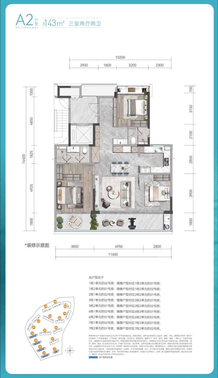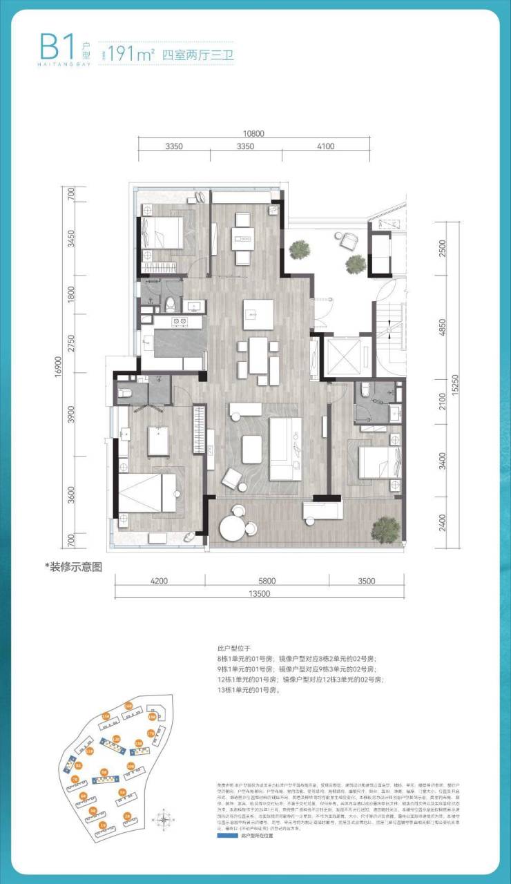 面积:建面约143-343㎡高端悦系奢邸3-4房