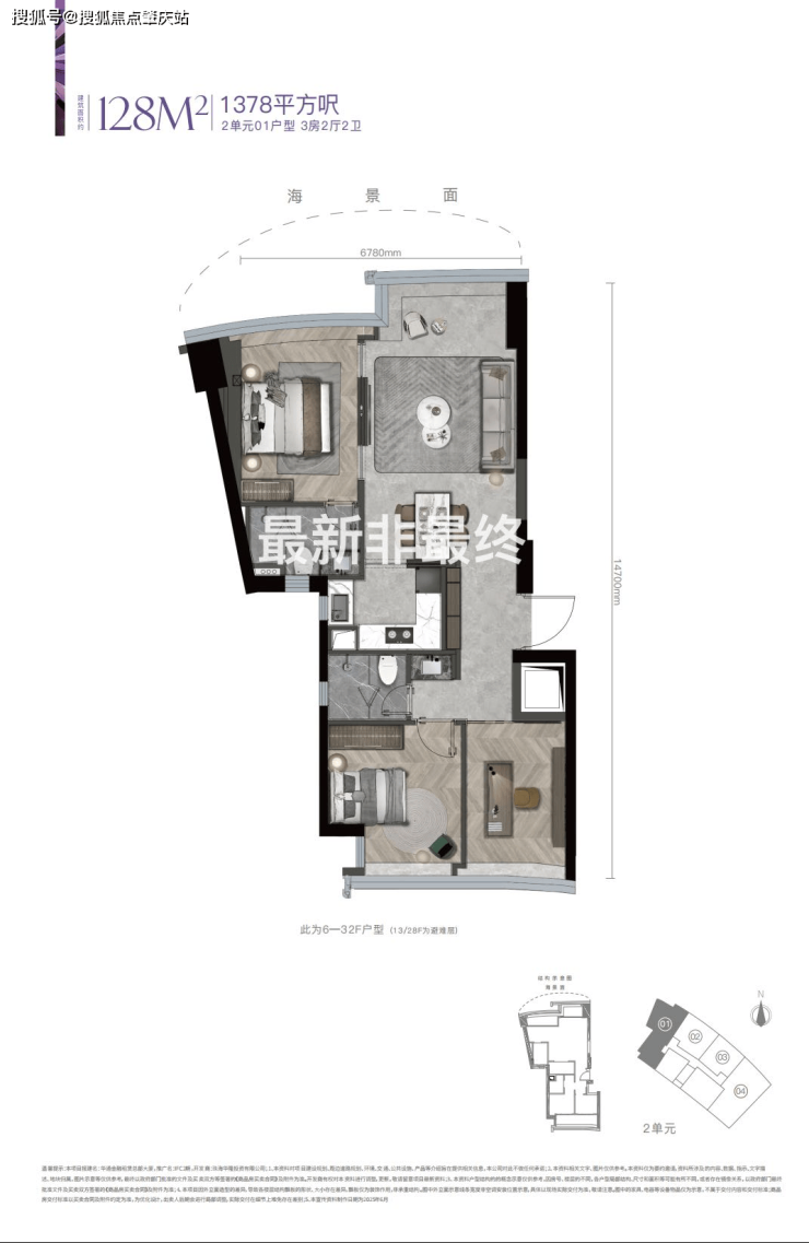 1房2厅1卫,超8米绝版景观面,看一线海景、澳门景,户型方正实用,配有明火厨房