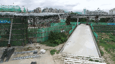 ▲在改造中的肇庆市体育中心游泳馆外连廊