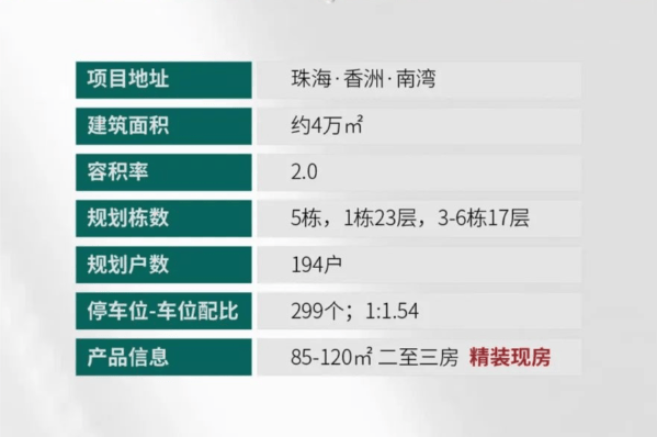 核心定位:南湾片区低密精装现房,珠澳通勤友好型人居项目