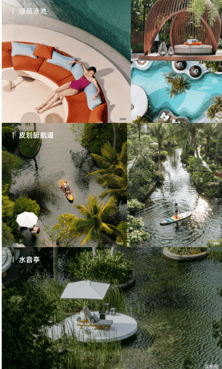 🌊度假生活:绿荫泳池、皮划艇航道、水音亭
