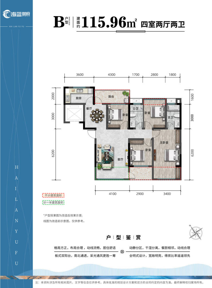 B户型:全景阳台,南北通透