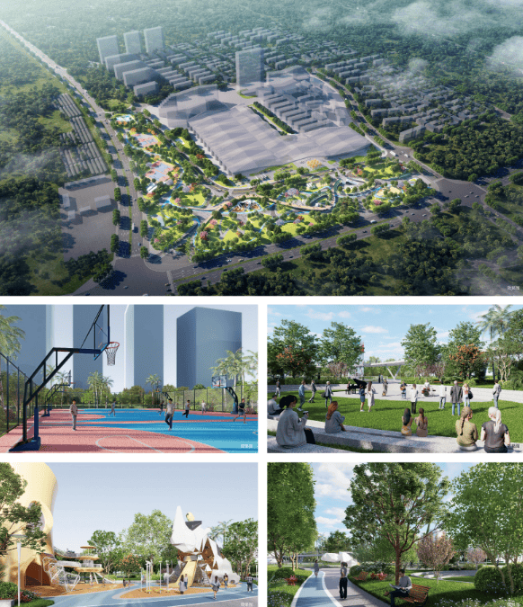 涵盖网球场、篮球场、儿童乐园、草坪剧场、健身步道等全龄活动空间;