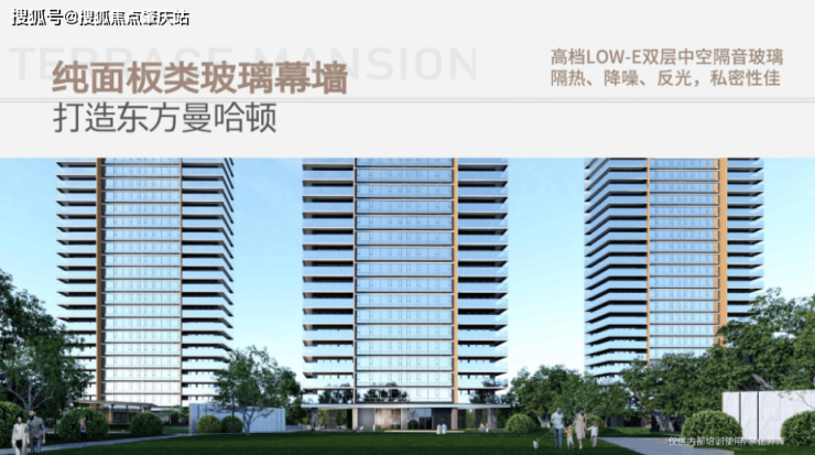 项目的外立面,选用了最优质的大量类玻璃幕墙,在材料运用上面还选用高档的LOW-E双层中空隔音玻璃(可隔热,降噪,保证了私密性。玻璃厚度:大部分6mm+12mm+6mm、局部6mm+19mm+6mm),能够让您身处繁华的核心当中,但心灵又感受不到一分嘈杂。(项目是高明首例类玻璃幕墙大平层、特为塔尖层峰人士定制)