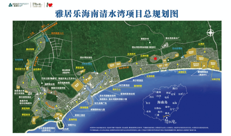 雅居乐云海听歌位于清水湾旅游度假区中段,东邻体育公园,西侧与雅居乐云海泽月为邻,北依九所岭,南靠清水湾大道与云海帆歌“一路之隔”。