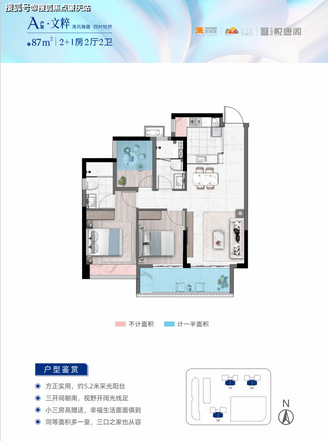 产品面积段:约87-94-107㎡三至四房