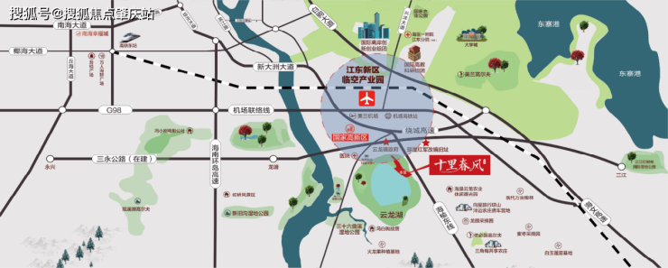 十里春风诗意小镇傲踞海口江东云龙湖畔,北距美兰国际机场T2航站楼约13公里,15分钟车程即可到达;海榆东线无缝接驳机场、高铁、城际列车、环岛高速、城市干道,自由往来城市内外,轻松玩转海岛南北。