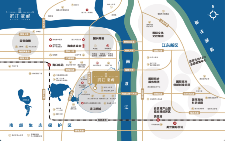 国兴、椰海、滨江三大商圈环绕,北接琼山区政府,繁华盛景从容近享。