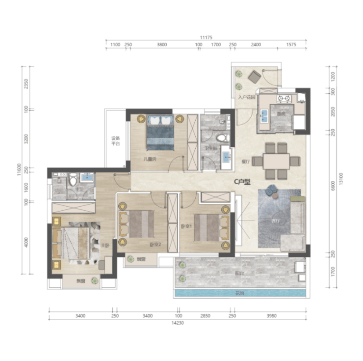 •住宅户型:建筑面积约111-141㎡三至四室
