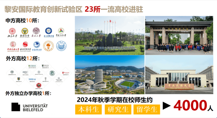 陵水黎安国际教育创新试验区目前已签约进驻23所国内外一流高校,未来将成为3万+国际高端人才的培养基地,也是自贸港核心人才孵化引擎。