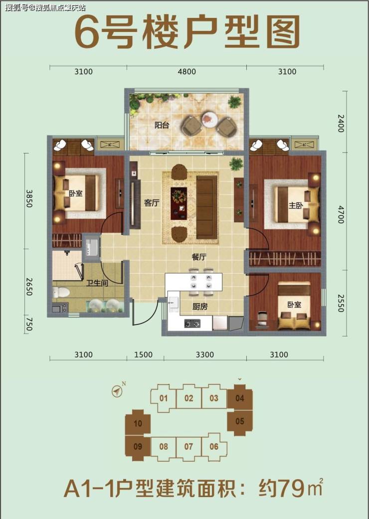 ⭐A1-1户型建筑面积:约79㎡
