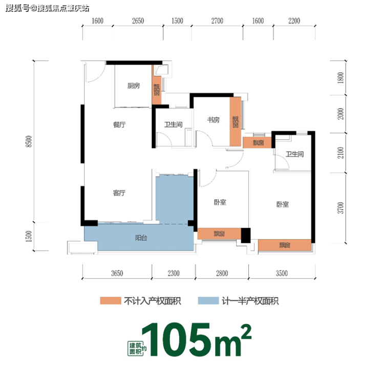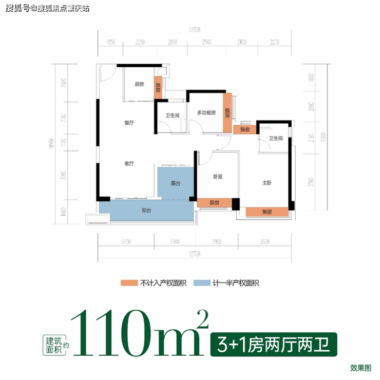 主卧双飘窗+次卧等面宽飘窗,全赠送高拓空间