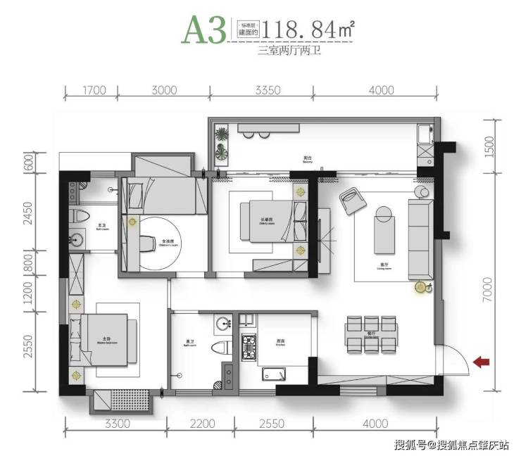 匠心打造建面约99-118㎡三室两厅两卫全系精品户型,诠释舒居真谛