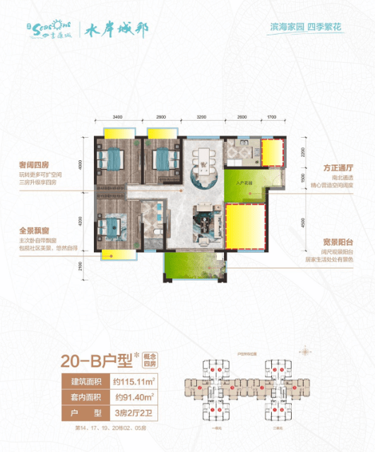 💎 20-B户型:约【115.11㎡】4房2厅2卫