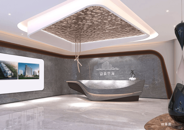 项目营销中心,提取海与云的元素,解构空间场景新体验,区隔出接待大厅,沙盘区、洽谈区、吧台区、儿童区、签约室等不同场域,将场景转换消弭于无形,让观者沉浸于体验之中,打造万宁滨海艺术体验馆,未来当地艺术打卡新坐标。