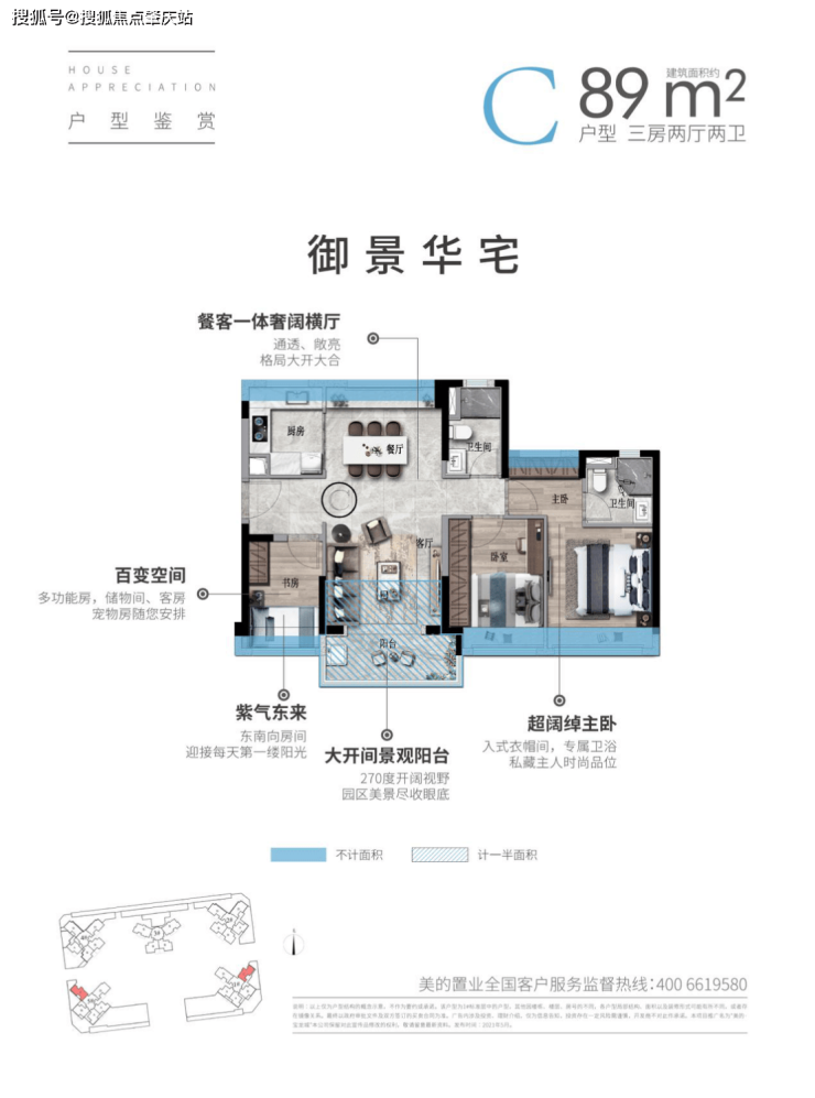 ■ 约83㎡三房两厅一卫 灵动空间设计,广阔观景视野 客餐厅一体化布局,直通大景观阳台 主次卧宽景大飘窗,品质生活悠然自得