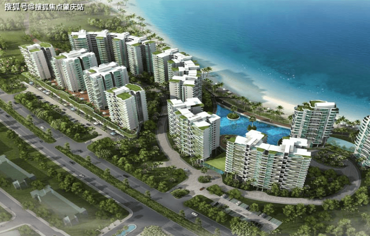建筑布局:已动工的滨海大道西延线将项目划为南北两区,北区为 238 套独栋别墅,南区为小高层公寓,临海设置五星级酒店。