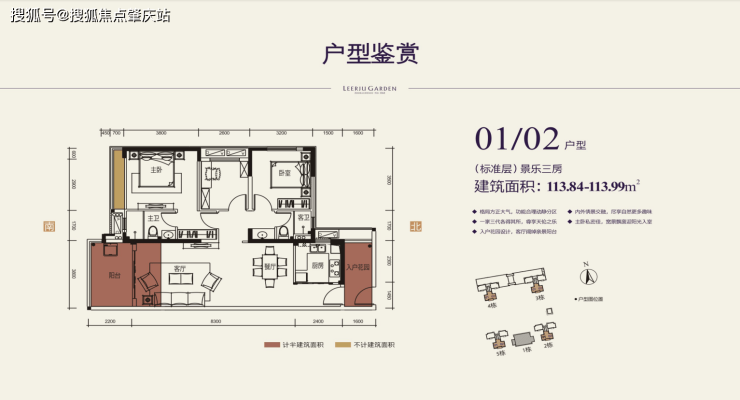 113.84-113.99㎡ 三房两厅两卫 全南向