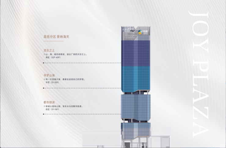 ①低区为7—19F,标准层面积约2300㎡,9F为避难层;