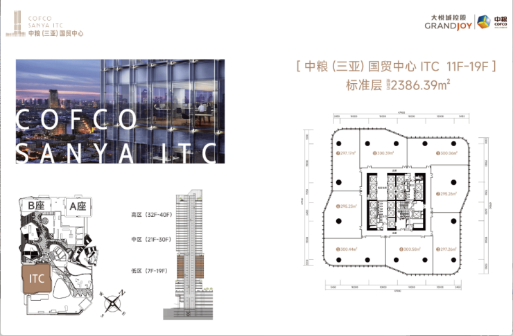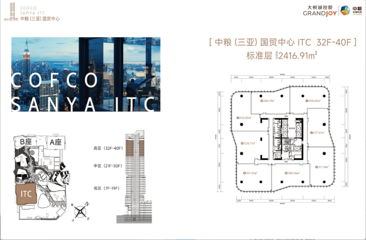 🌟中粮(三亚)国贸中心 ITC(207米地标写字楼)共43层,总建面约7.4万㎡,约12米建筑层高大堂,标准层高约4.3米;