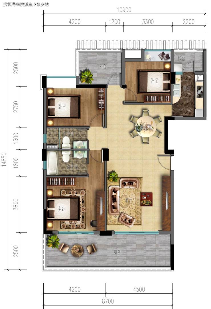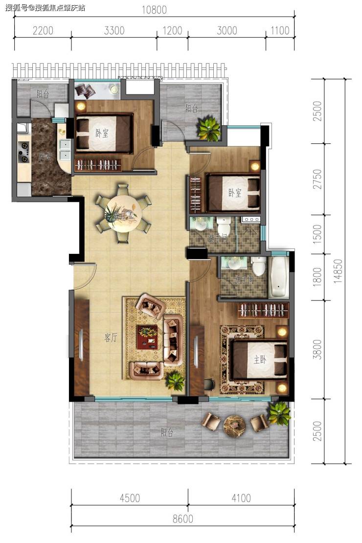 建筑面积100-108㎡ 3房2厅2卫