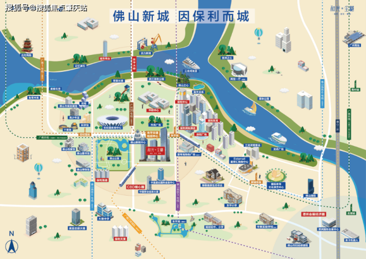 项目位于三龙湾板块位置,占据佛山新城CBD核心位置,享佛山新城CBD经济繁华和东平河滨水宜居生活。
