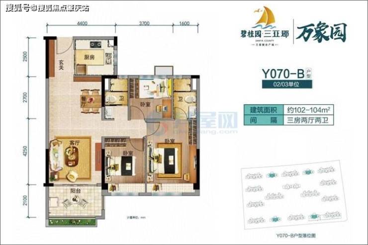 三亚·碧桂园三亚郡,三期3#在售建面约100-108㎡三房,全南向板式楼,南北通透,常年清风送爽,舒享光照时光。