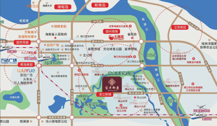 海口滨江新城是海口市的一个重点建设项目,位于海口市东南部的南渡江畔,旨在打造成为海口市新的综合性城市中心。