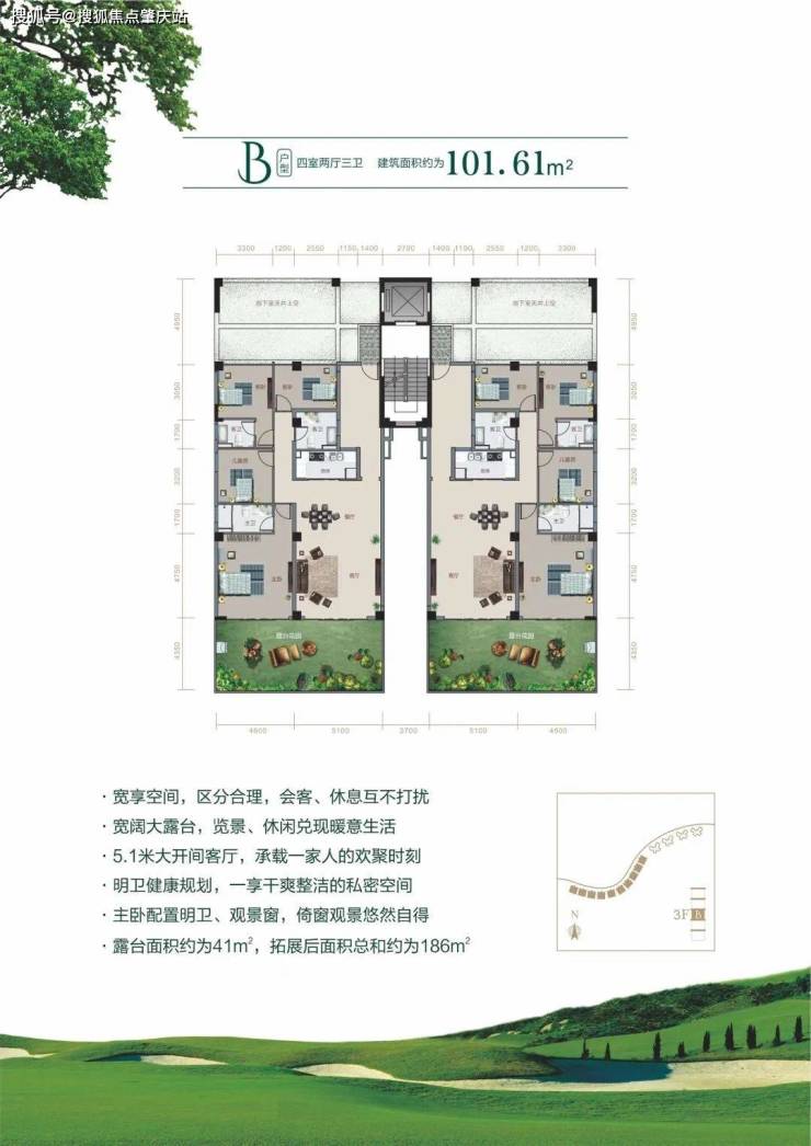 高层住宅:主力户型 72-92㎡两至三房,均价 20000 元 /㎡,毛坯现房,两梯三户,首层架空设计