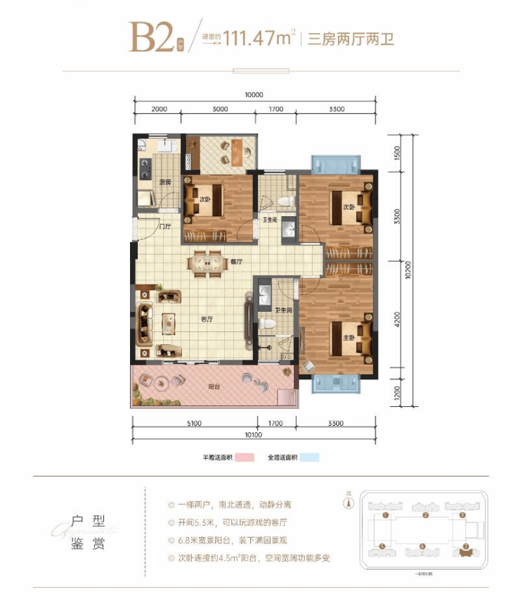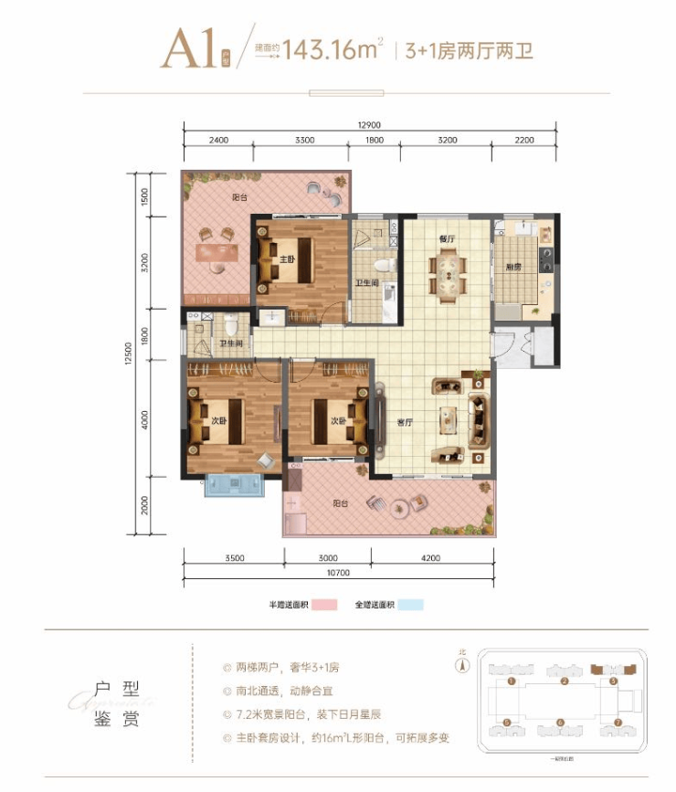 板式建筑,南北通透,客厅7.2米宽景阳台,推窗即星光,主卧套房阳台约16㎡的可拓展空间,超高得房率,一线装修品牌精装交付,让您的生活一步到位,犒赏进阶人生。