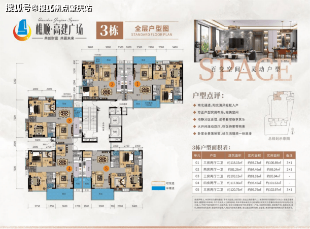 项目现推售的是:1、2栋2梯4户(4个户型:87m两房,121m--142m三房),3、4栋2梯5户(5个户型:81㎡两房,103㎡-121㎡三至四房),30层高。