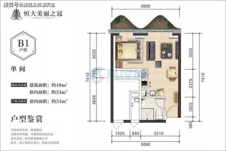 三亚·恒大美丽之冠,央景红盘,建面约31-120㎡产权式酒店,套内面积约22-70㎡,。外拥山河海汇,内置八重风情园林景观。